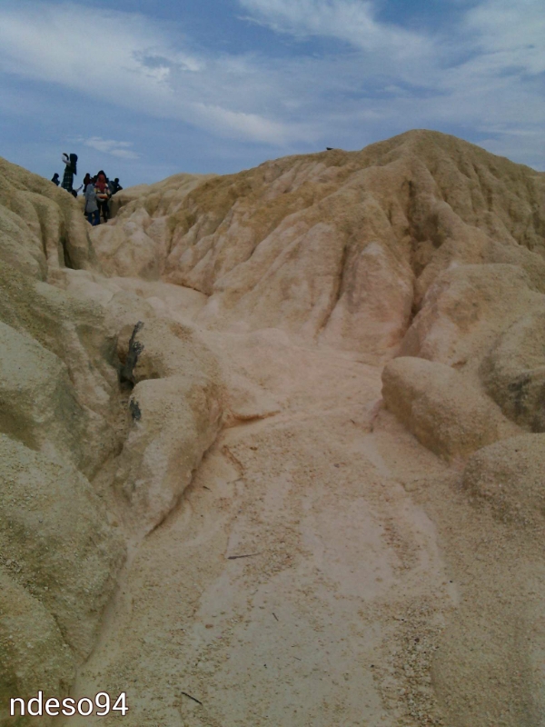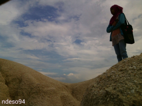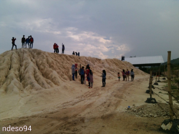 Terlihat begitu ramai. Tumpukan pasir kwarsa sebagai limbah olahan batuan kapur ini setinggi 3 sampai 5 meteran. Kondisi saat ini tercipta karena hujan yang mengikis pasir yang halus, sedangkan bagian dalam sudah mulai memadat karena tekanan dari luar.