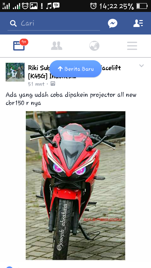 Bro ndess cari cari di facebook dan akhirnya mendapatkan penampakan motor New CBR150R ini dengan headlamp projie :