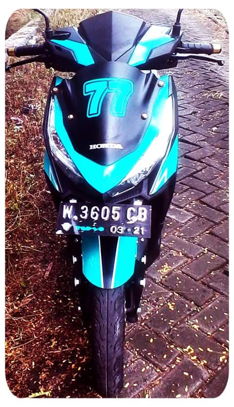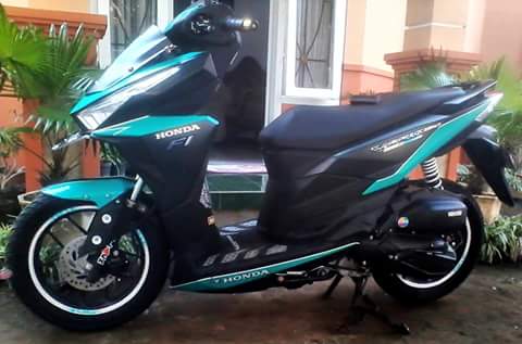 Tak hanya modifikasi pada Visor, sang pemilik juga memodifikasi minimalis warna pada Vario hitam dop ini. Dengan sentuhan wana biru terang pada beberapa sisi seperti buritan belakang dan depan. Selain itu pada body stang juga kena sentuhan biru.