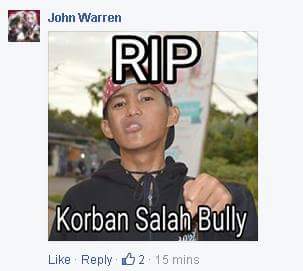 Semoga mendapat balasan yang pantas. Kalau gak mau ditegur guru karena sekolah, jangan sekolah! Dan juga jangan ikut dukung aksi yang salah, entar jadi korban salah bully kayak orang ini.