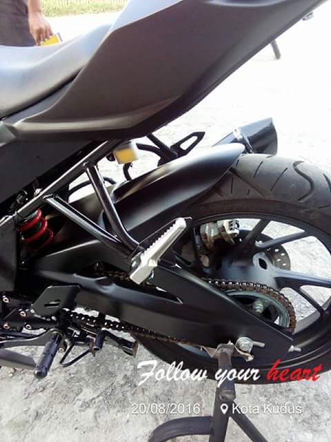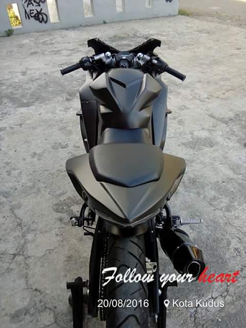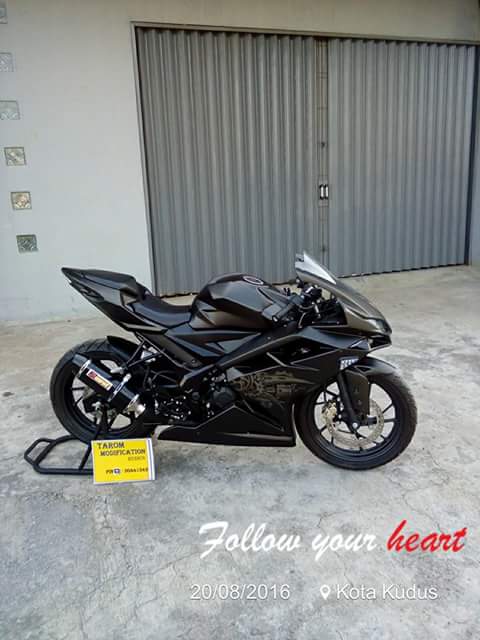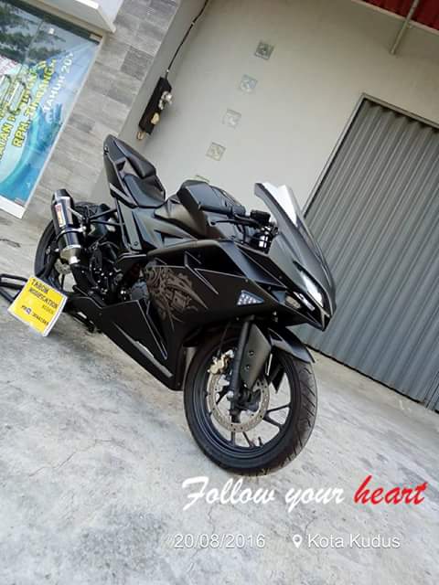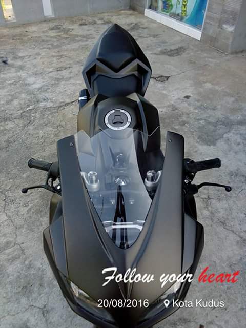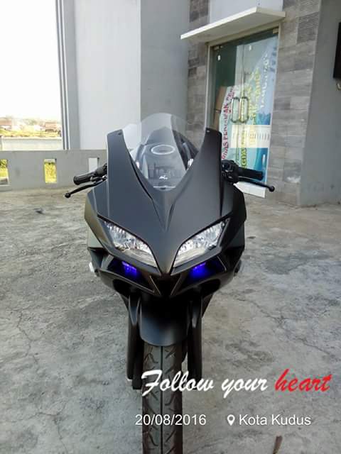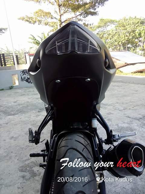 Adalah Tarom Modification asal Kudus, Jawa Tengah. Yang jadi modifikator motor dohc overstroke ini. Motor yang aslinya naked ini dirubah hampir total, menyerupai CBR250RR.