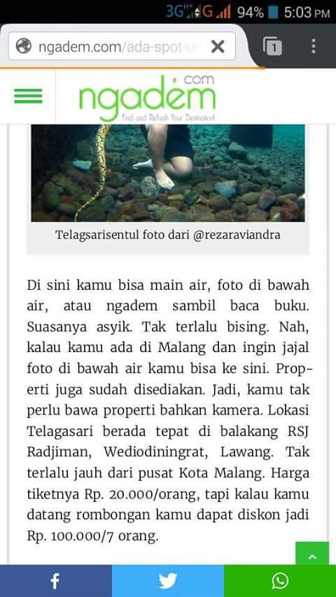 Beberapa saat yang lalu social media, dihebohkan dengan lokasi foto bawah air di Malang. Tepatnya di Telaga Sentul/Telagasari, RSJ Dr Radjiman Wediodiningrat. Telaga ini jernih, sangking jernihnya sampai ada beberapa orang memanfaatkan sebagai sarana berfoto. Biayanya kalau gak salah sekitar 20k. Namun, tahukah brosis itu illegal?
