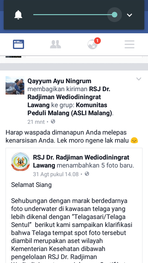 Sehubungan dengan marak berdedarnya foto underwater di kawasan telaga yang lebih dikenal dengan “Telagasari/Telaga Sentul” berikut kami sampaikan klarifikasi bahwa Telaga tempat spot foto tersebut diambil merupakan aset wilayah Kementerian Kesehatan dibawah pengelolaan RSJ Dr. Radjiman Wediodiningrat sesuai dengan Sertifikat Badan Pertahanan Nasional Nomor AC. 333476