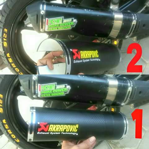 Oleh seorang biker Byson. Biker motor Yamaha ini, dengan kreatifnya mampu membuat tampilan knalpot racing sejuta umat yaitu Nob1 menjadi mirip Akrapovic dengan cukup mudah. Yaitu menutupi tampilan knalpot dengan alat ini :