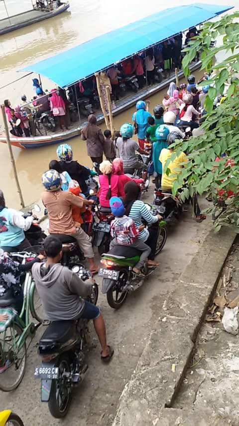 Arus Bengawan Solo saat itu sedang tinggi. Karena curah hujan turun tanpa henti. Terlihat muatan full, baik manusia maupun motor. Bisa dibayangkan, bro ndess aja takut banget. Oh iya, berita dari pemerintah mengabarkan di bangun sebuah jembatan penghubung kecamatan Trucuk dan Bojonegoro Kota. Sebagai upaya memperlancar arus transportasi dari sebrang, serta  juga mengurangi resiko kecelakaan di bengawan.