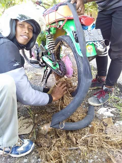 Nah, apa yang terjadi bila ban tube bocor di tempat yang jauh sekali dari tambal ban atau kampung terdekat? Bila situasi benar benar darurat, bisa pakai cara ini.