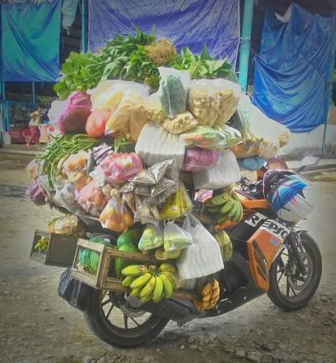 Nah, yang di atas adalah mas sayur, salah satu blogger otomotif juga berprofesi jualan sayur keliling. Pakai motor keren, dan tak pernah masuk TV kayak yang di Jawa. Yang ada malah poto dicomot tanpa ijin dan jadi opino negatif.