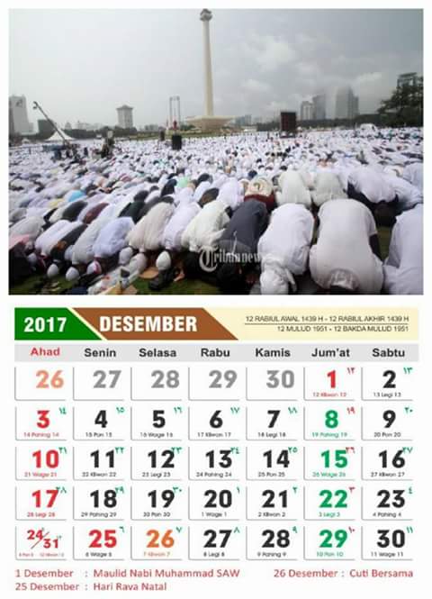 Gambar Kalender Tahun 2017 tema Aksi Bela Islam 2-12