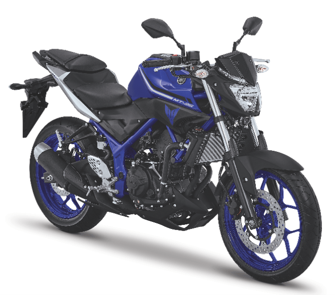 Tiga warna baru MT-25 adalah Solid Blue, Heroic Silver, Black Strike. Solid Blue menunjukkan identitas warna biru yang memberikan feel teknologi dan performance tinggi Yamaha. Heroic Silver menggambarkan karakteristik brand image MT. Warna silver menekankan pada semangat sporty dan teknologi tinggi yang menambah kualitas motornya. Black Strike mempertajam imej strong dan powerful.