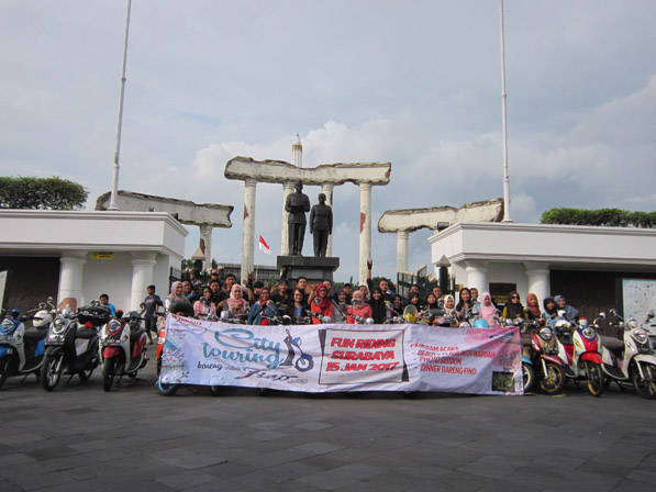 Jika di tahun 2016 kemarin Yamaha manjakan konsumen pengguna Nmax 155 VVA dengan rentetan acara city turing, kini di awal tahun 2017 giliran konsumen pengguna Yamaha Fino yang ambil bagian. Tepat di hari Minggu kemarin (15/1/17) Yamaha Jatim bersama para pengguna Yamaha Fino yang ada di Surabaya melakukan City Touring Bareng keliling kota Surabaya. Acara touring ini dilakukan bareng dengan pengguna Yamaha Fino series yang dominan cewek semua. Memang sasaran utama Yamaha Fino juga sih.