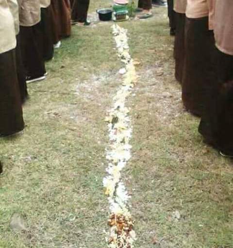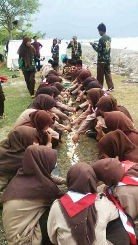 Adalah Asep Saepul yang mengunggah foto ini. Foto beberapa adik pramuka yang melakukan kegiatan kemah di sebuah tempat. Sebenarnya foto ini biasa, jika brosis tahu bahwa yang berbaris lurus itu adalah makanan. Pasti lansung naik pitam dah. Bahkan TNI pun tidak seperti ini! Ini sudah penghinaan kemanusiaan. Seakan adik-adik pramuka ini, rendah harga diri. Mental? Ini keterlaluan bung.