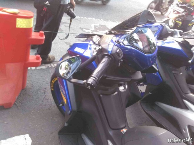 Walau begitu, modifikasi tetap jalan. Nah, salah satunya Yamaha Aerox 155 ini. Berwarna biru, Bro ndess bisa bilang motor ini keren, walau aksesorisnya cenderung kalem.