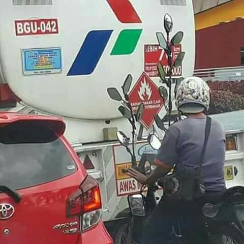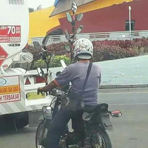 Brosis, jika spion dua terpasang dibilang motor orang berdoa. Bagaimana jika motor dengan spion selusin? Itu yang terjadi di sebuah motor bebek yang terjepret kamera netizen.