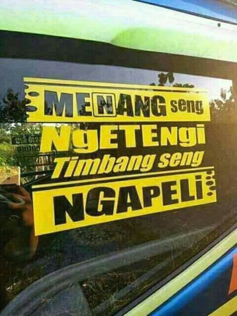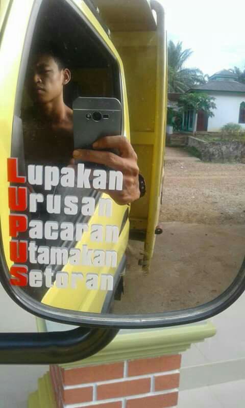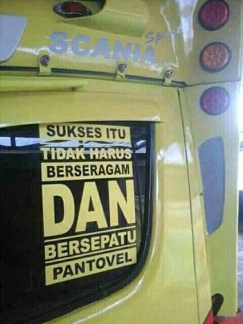 Begitulah beberapa meme kata yang terletak di kaca samping kabin truk. Biasanya, di truk stut jack, ekspedisi, dan beberapa armada pribadi dimodif kayak gini. Kreatif, serta berbagi pesan moral.