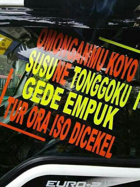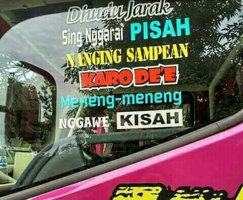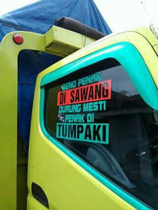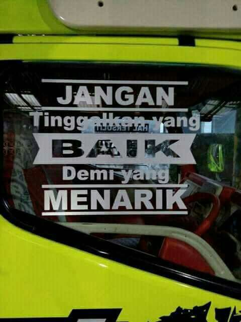 Begitulah beberapa meme kata yang terletak di kaca samping kabin truk. Biasanya, di truk stut jack, ekspedisi, dan beberapa armada pribadi dimodif kayak gini. Kreatif, serta berbagi pesan moral.