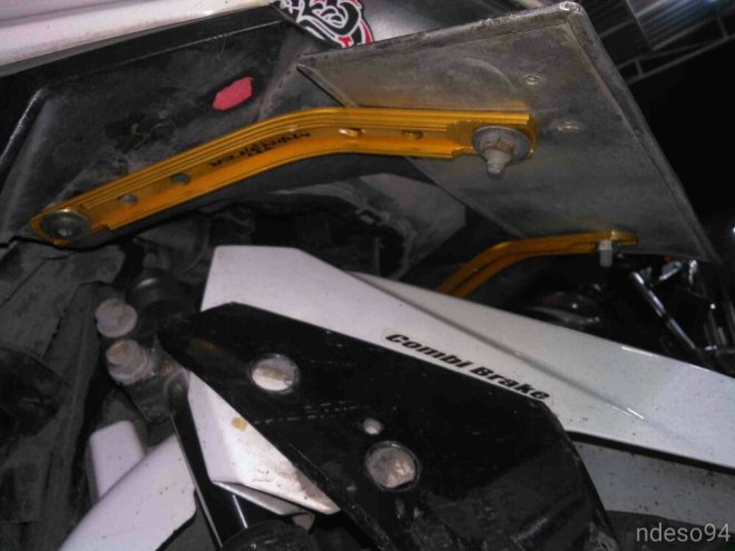 Brosis, pasca kecelakan nabrak motor dari belakang di traffic light. Membuat braket custom yang dari besi plat, patah. Plat nomor jadi geal geol. Terpaksa deh ganti braket. Bro ndess memilih brakrt custom buat rem belakang.