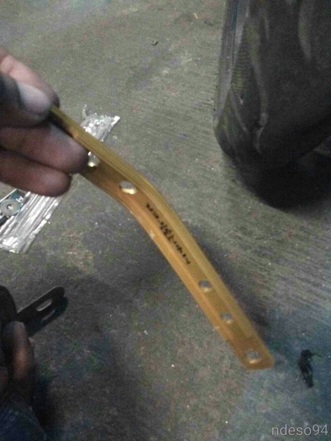 Karena posisi baut yang jadi tumpuan agae miring ke dalam, braket harus ditekuk. Menekuknya juga jangan terlalu kuat atau bengkong, karena tidak bisa dikembalikan lagi atau resiko patah juga. Bro ndess di sini, bengkokin pakai obeng.