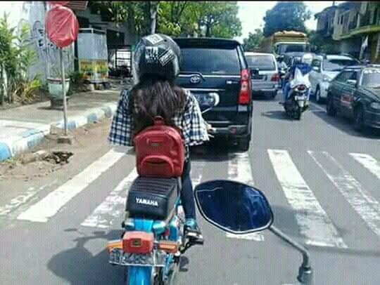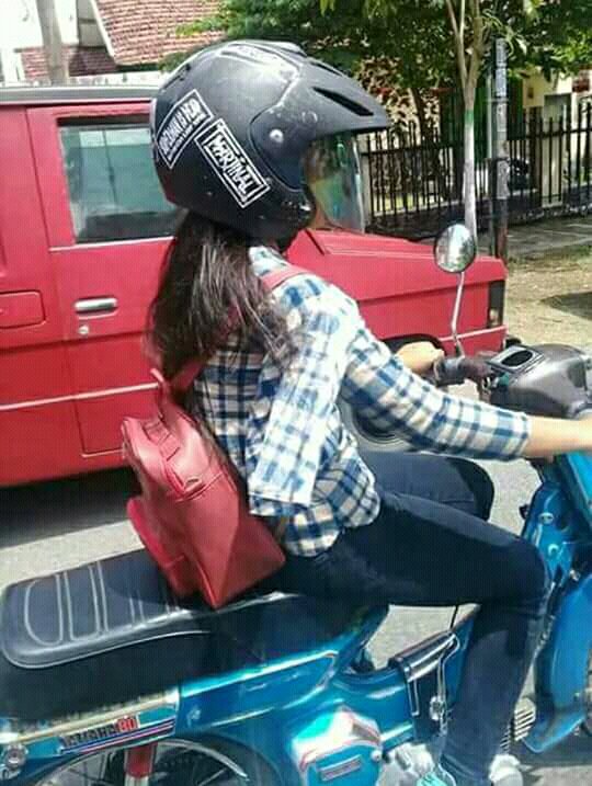 Tentu itu ditunjang oleh kondisi motor yang layak dilihat, bukan motor yang jarang dirawat. Seperti gadis satu ini, terjepret kamera pengguna jalan lain. Sedang mengendarai motor bebek 2tak Yamaha, yaitu Yamaha 80.