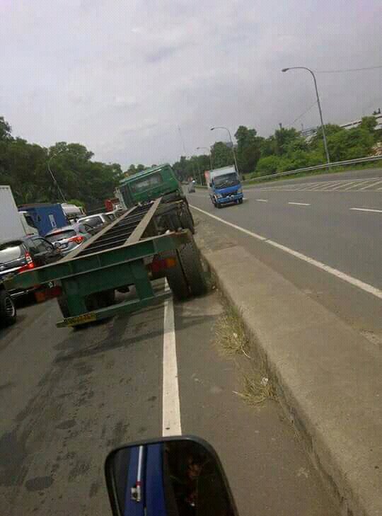 Trailler melewati sparator jalan memang termasuk langka. La kendaraan panjang dan lebar. Mungkin kalau pas ada muatan kagak berani ya. Resiko terguling besar.