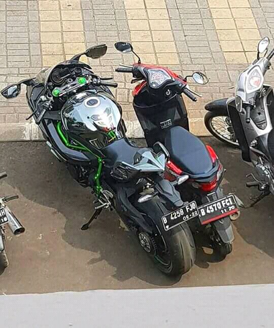 Nah, Ninja H2 ini bro ndess belum pernah ketemu langsung. Entah dimana owner yang daerah Surabaya ini, kalau moge lain macam R6, ZX636 ataupun Harley sudah kayak kacang deh. “Banyak” yang punya. Nah, mungkin bagi brosis yang penasaran dengan besarnya Ninja H2 bisa membandingkannya dengan BeAt di bawah :