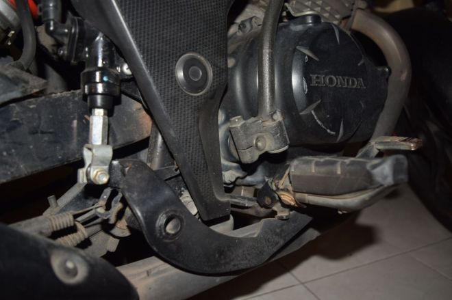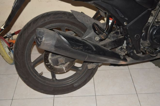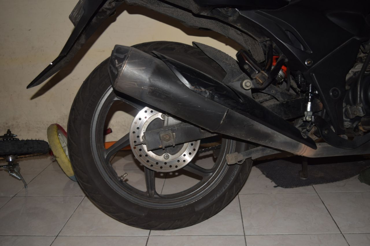 Nah, karema dirubah jadi monoshock tentu meninggalkan bekas tempat dual shock original. Kalau enggak eman dan ingin finishing yang rapi. Bagian ini bisa dihilangkan dengam Gerinda. Untuk mempermanis dan membuat kekar tampilan arm belakang, bisa memakai spakbor kolong milik Byson.