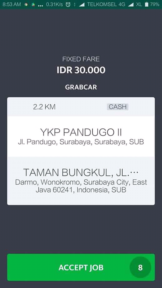 Berikut bentuk orderannya di Aplikasi Driver Taxol :