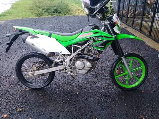 KLX versi baru ini, bagiam roda dirubah semua. Depan pakai velg cw custom, dengan cakram lebar dan ban biasa. Kemudian ban belakang memakai jari jari dan ukuran velg lebih kecil.