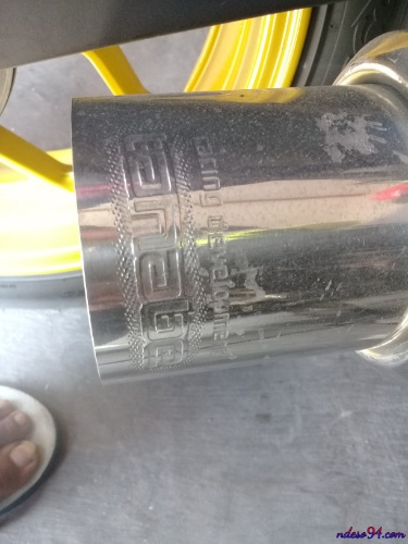 Motor MT25 merahnya ini dipasangi silincer knalpot mobil! Merk tanabe. Knalpot ini aslinya kan untuk mobil yang memiliki 3-4 silinder. Suaranya menggelegar agak ngempos. Wajar, karena knalpot bukan peruntukannya. 1000cc ke atas vs 250cc. Tenaga bukan naik malah turun. Namun, soal tampilan keren. Knalpot posisi di bawah alias underbelly.