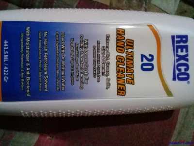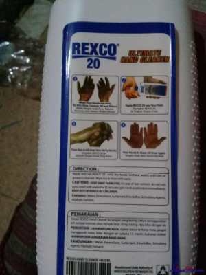 Ada produk namanya REXCO20. Produk ini mempunyai keunggulan yaitu digunakan sebagai pencuci tangan. Di mana lebih baik daripada sabun, maupun deterjen. Sangat rekomended buat yang tangannya selalu kotor. Misal karena kerja sebagai mekanik bengkel, yang tentu noda oli jadi khas.