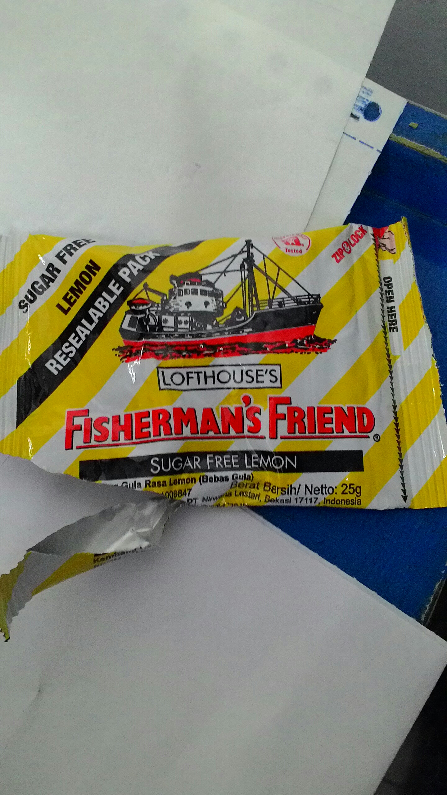 Brosis. Fisherman adalah salah satu permen yang kasiatnya buat temggorokan dan menyegarkan mulut. Harganya sih mahal, 12ribuan. Tapi kasiatnya manjur Lanjutkan membaca Fisherman, permen menyegarkan mulut dan tenggorokan