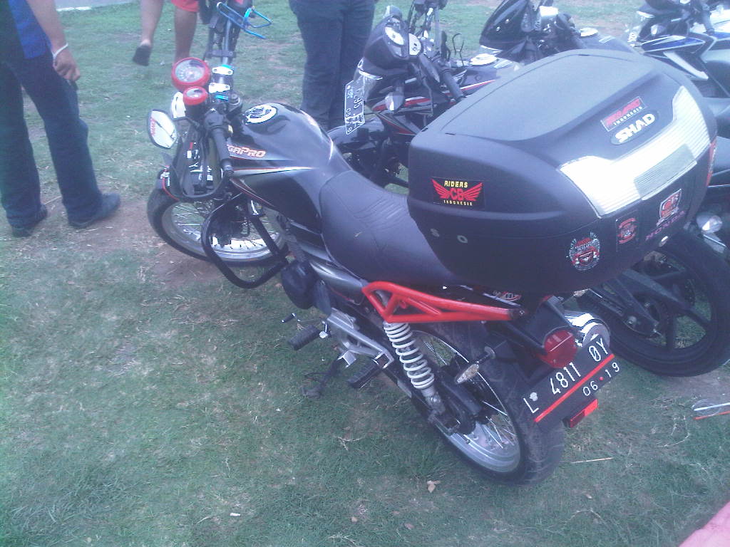 Bro ndess bertemu sebuah megapro milik anak klub yang telah dimodifikasi sederhana tapi keren. Yups, penambahan parts terralis di buritan belakang, bodyguard di depan, dan yang menarik adalah pemasangan speedmeter fino untuk menggangtikan speedometer aslinya.